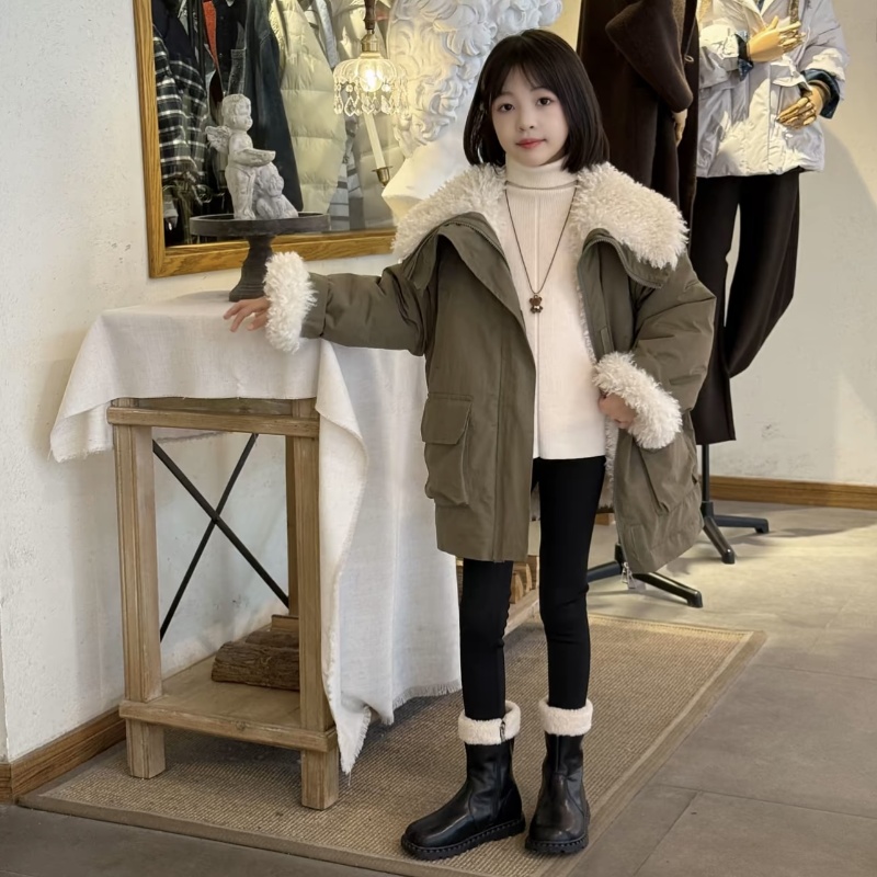 羊羔毛加厚保暖工装棉衣女童冬季新款大翻领宽松加厚派克棉服外套