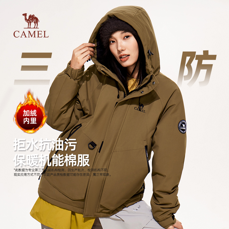骆驼女装棉衣男冬季2025新款摇粒绒加厚防水工装夹克棉服情侣外套