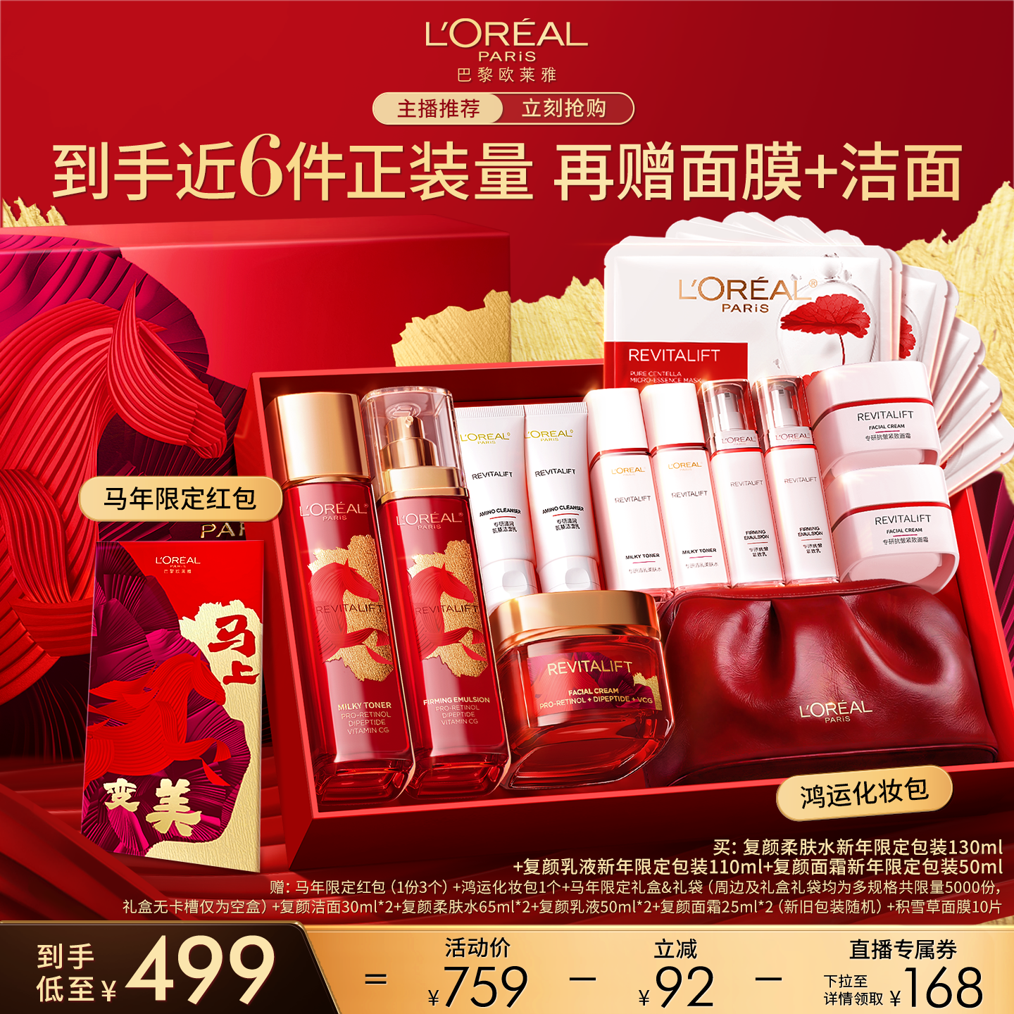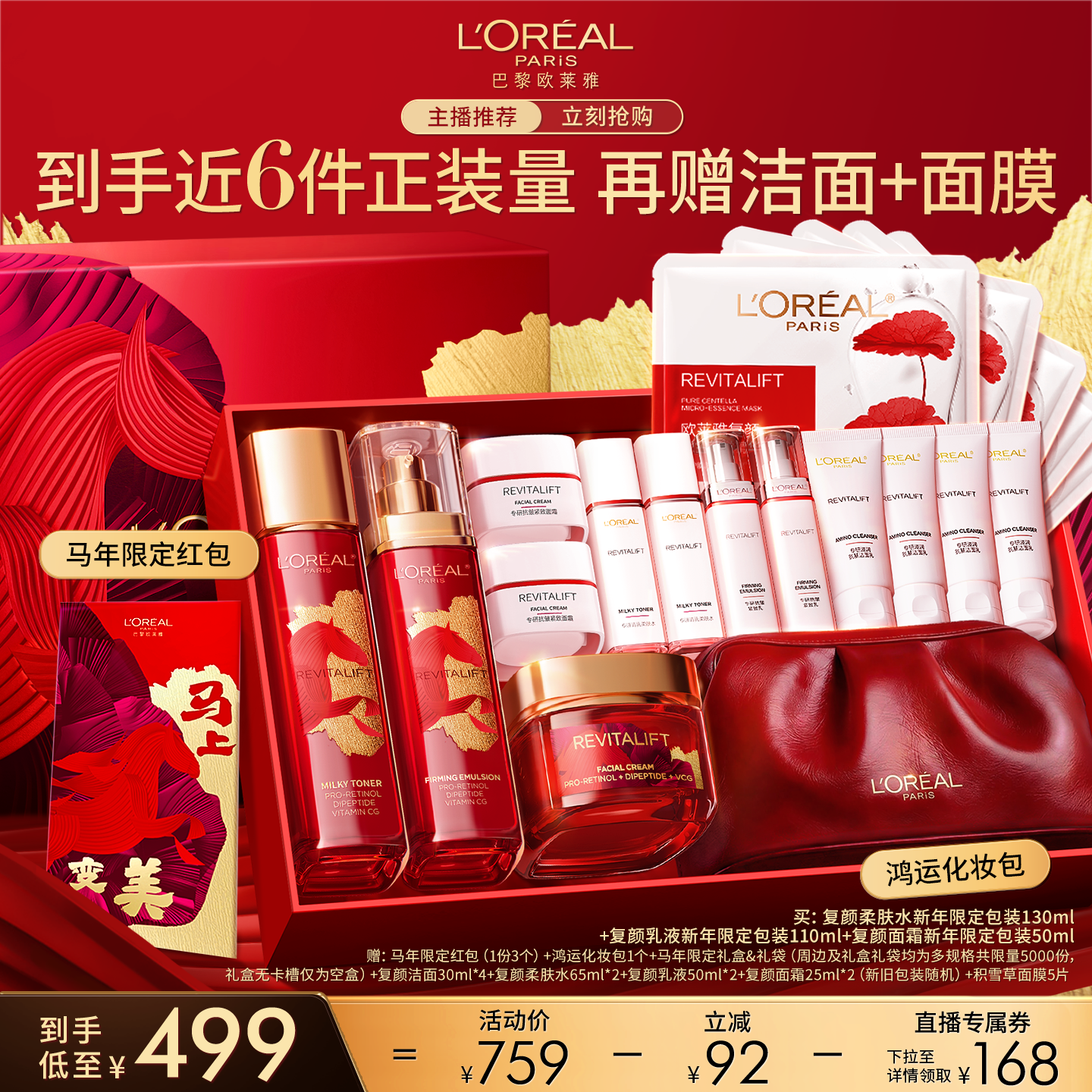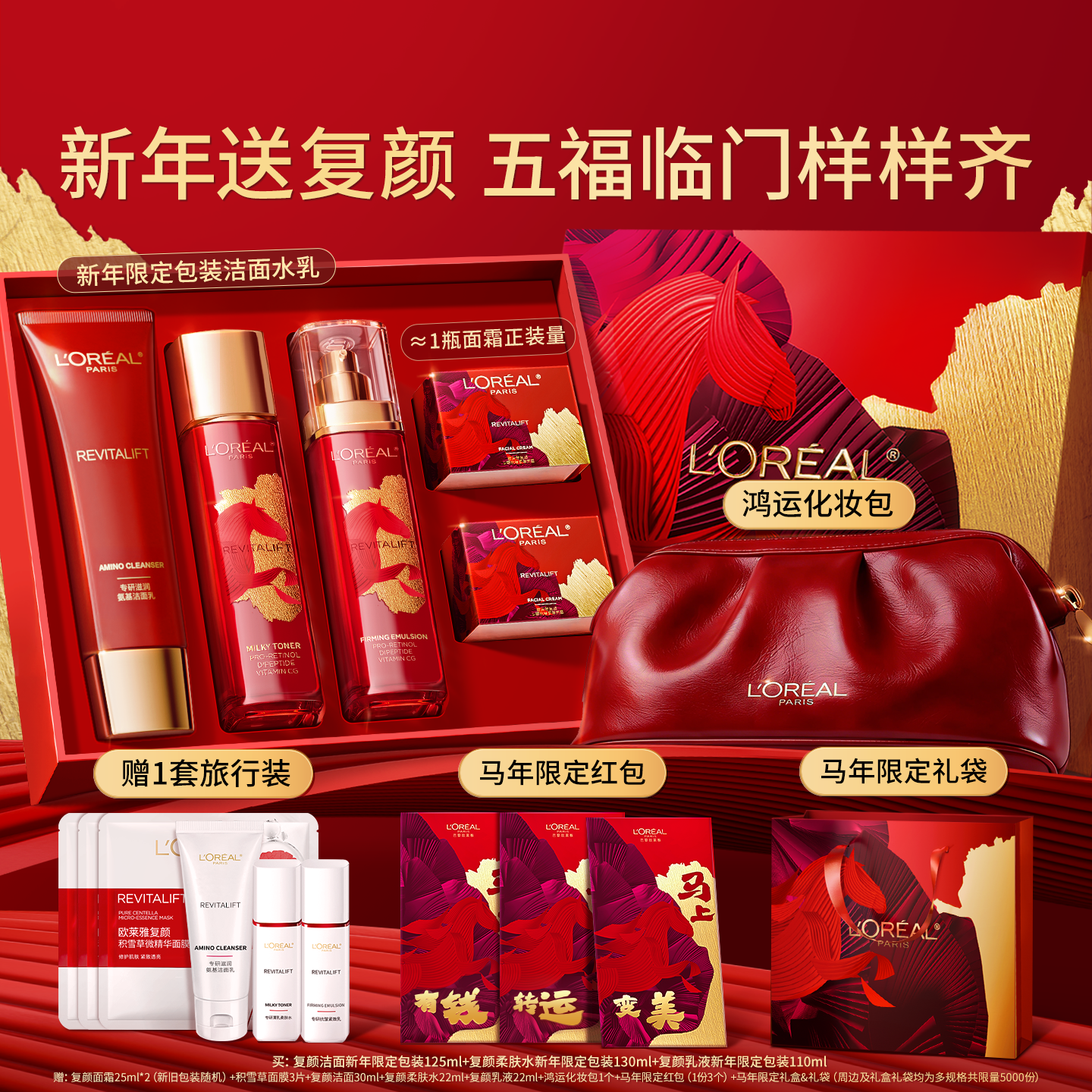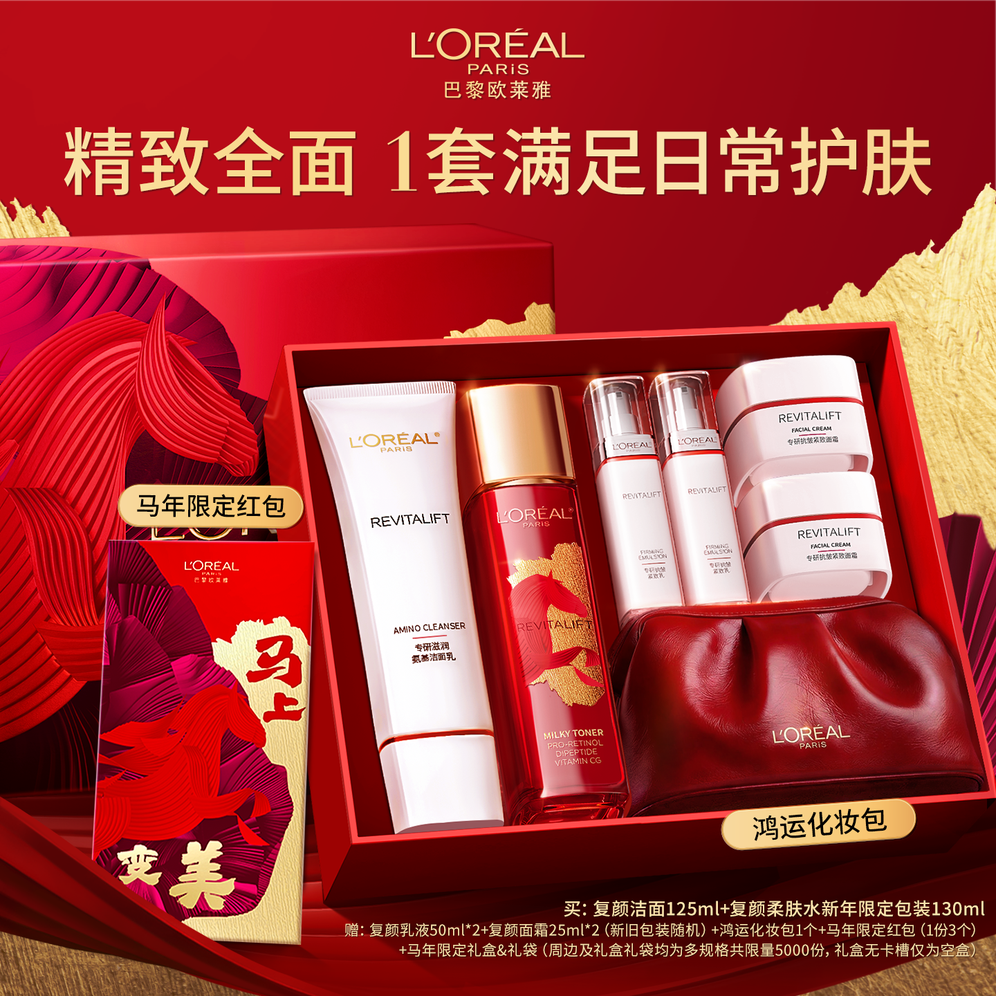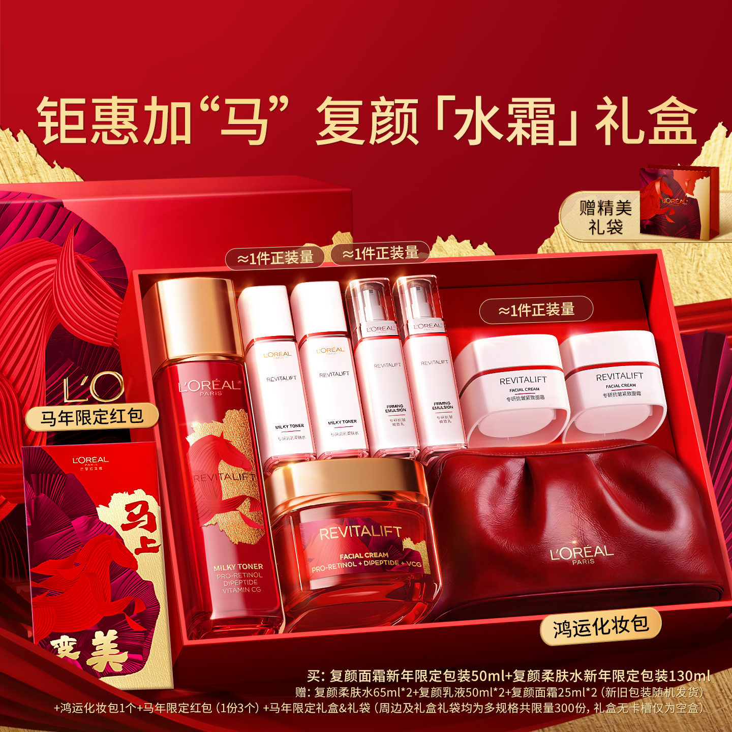 【新年礼物】欧莱雅万宁大红瓶紧致抗皱抗老日霜晚霜复颜面霜套装