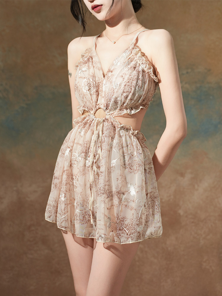 蜜Dream泳衣女2025新款ins网红款性感钢托聚拢连体吊带泳装带罩衫