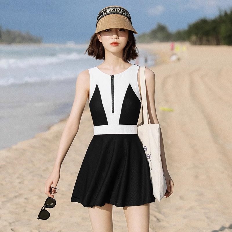 甜酷风泳衣女夏2023新款保守连体裙式遮肚显瘦沙滩度假温泉游泳装