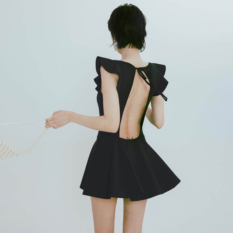 法式泳衣女遮肚显瘦ins风温泉新款性感仙女范V领露背裙式连体泳装
