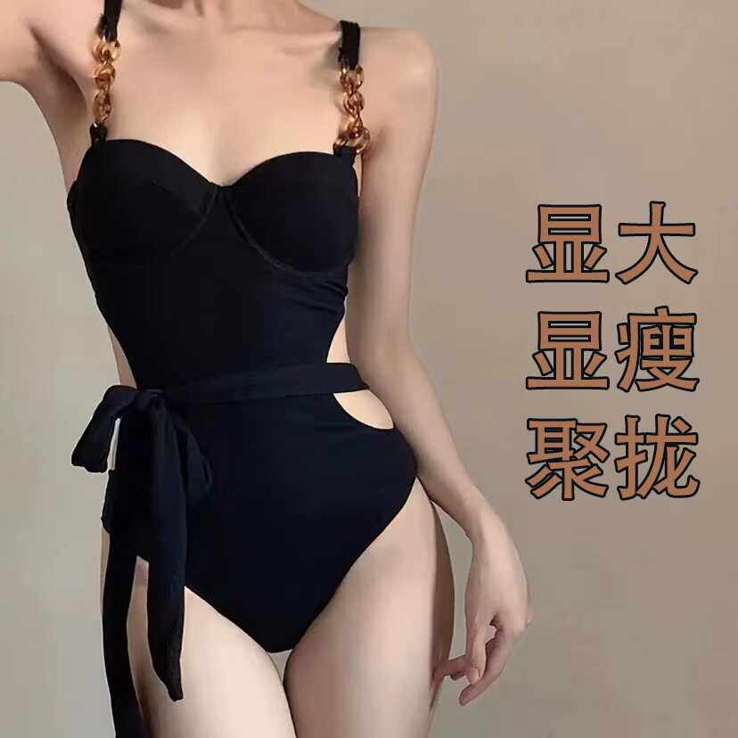 沙滩温泉新款小胸钢托聚拢连体泳衣女露背网红ins度假甜欲风泳装