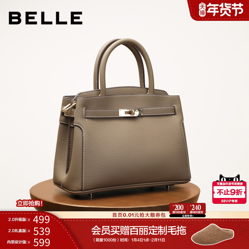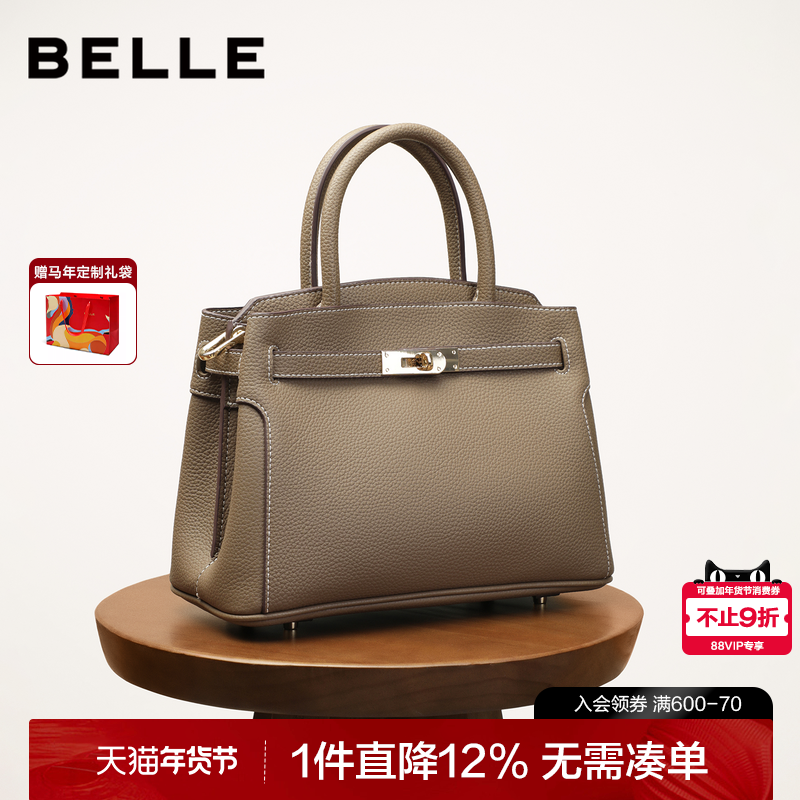 百丽包包女鎏金岁月凯莉包妈妈包质感通勤大容量手提包婚包X7257A