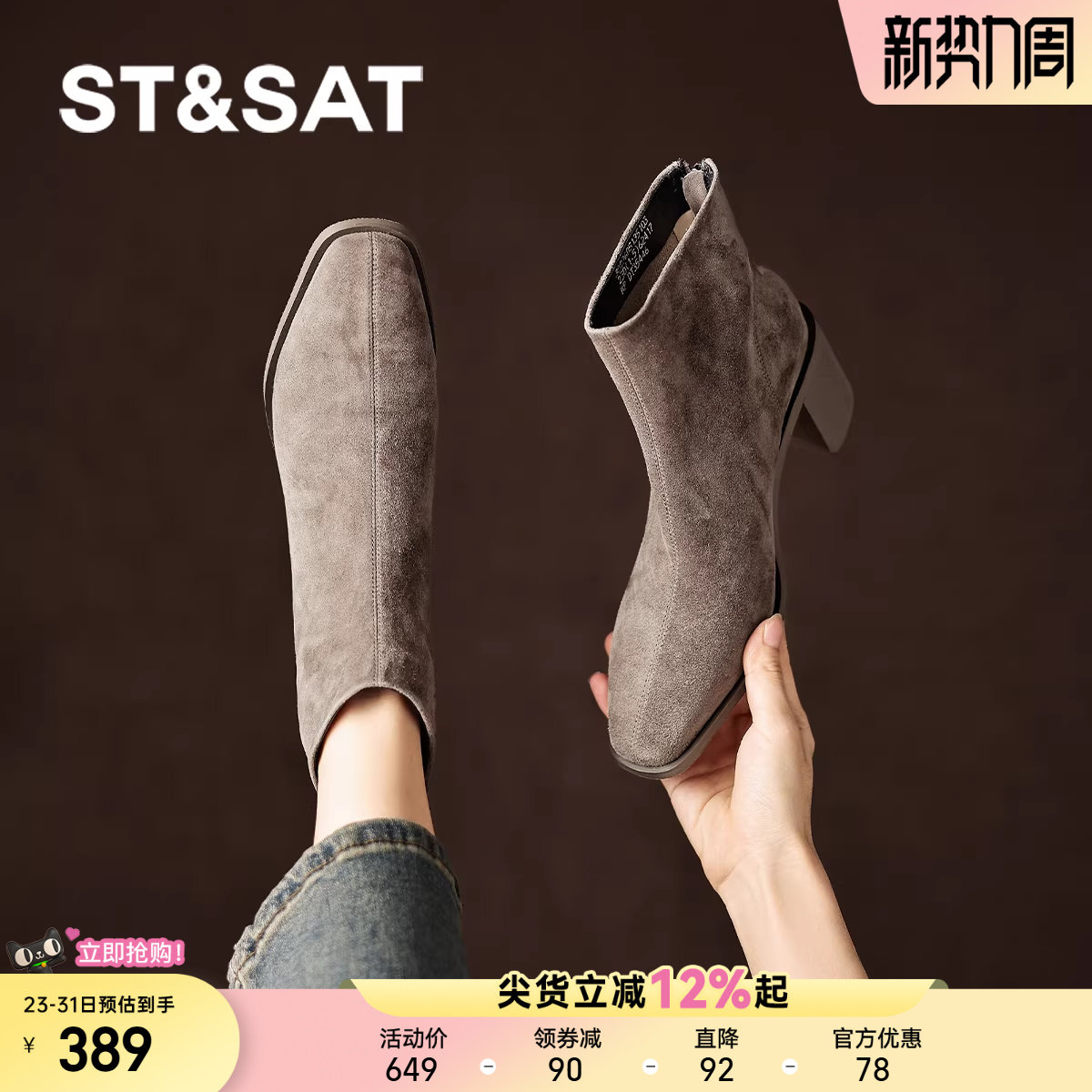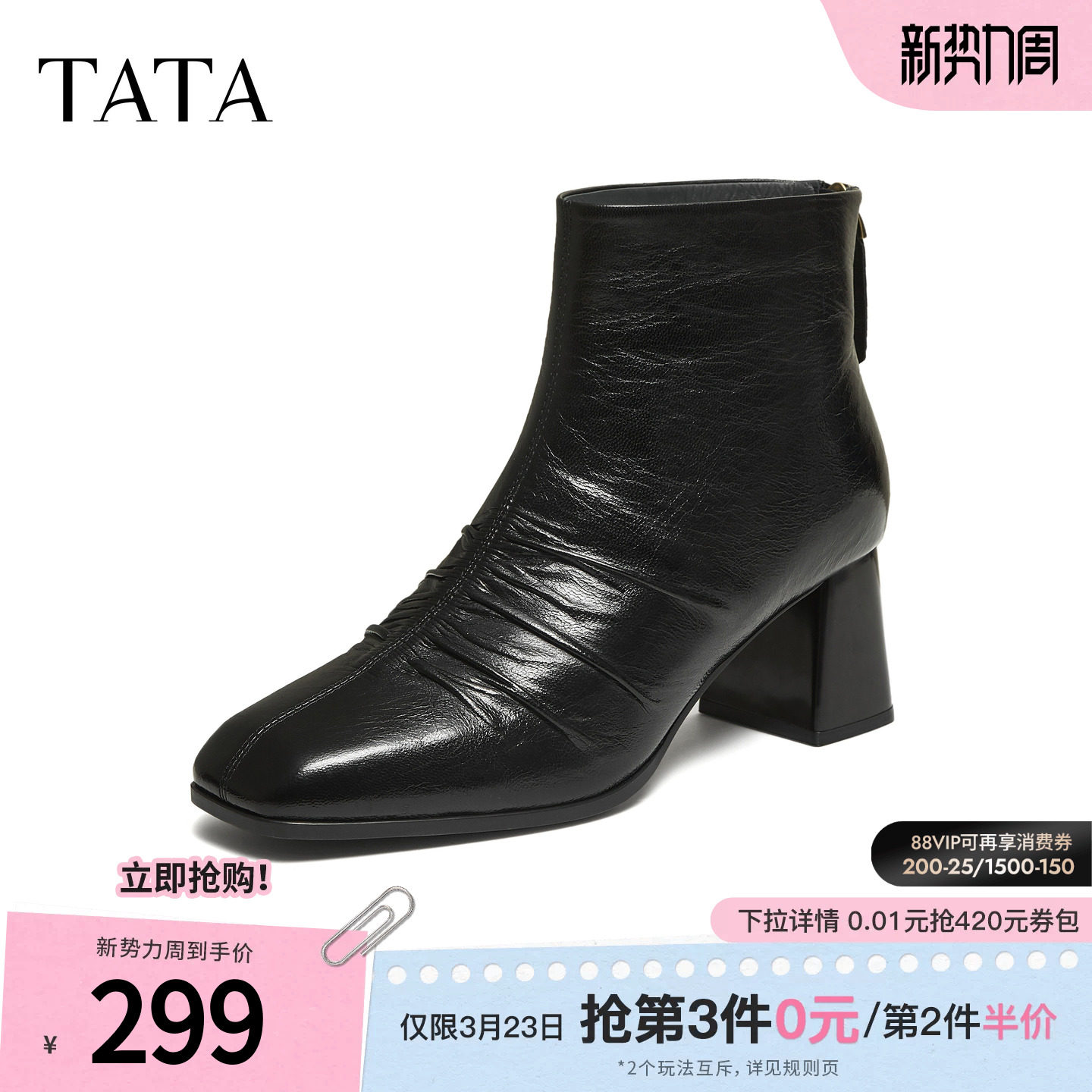 TATA他她靴子女2025时装靴粗跟短靴羊皮高跟马丁靴瘦瘦靴UWK01DD5