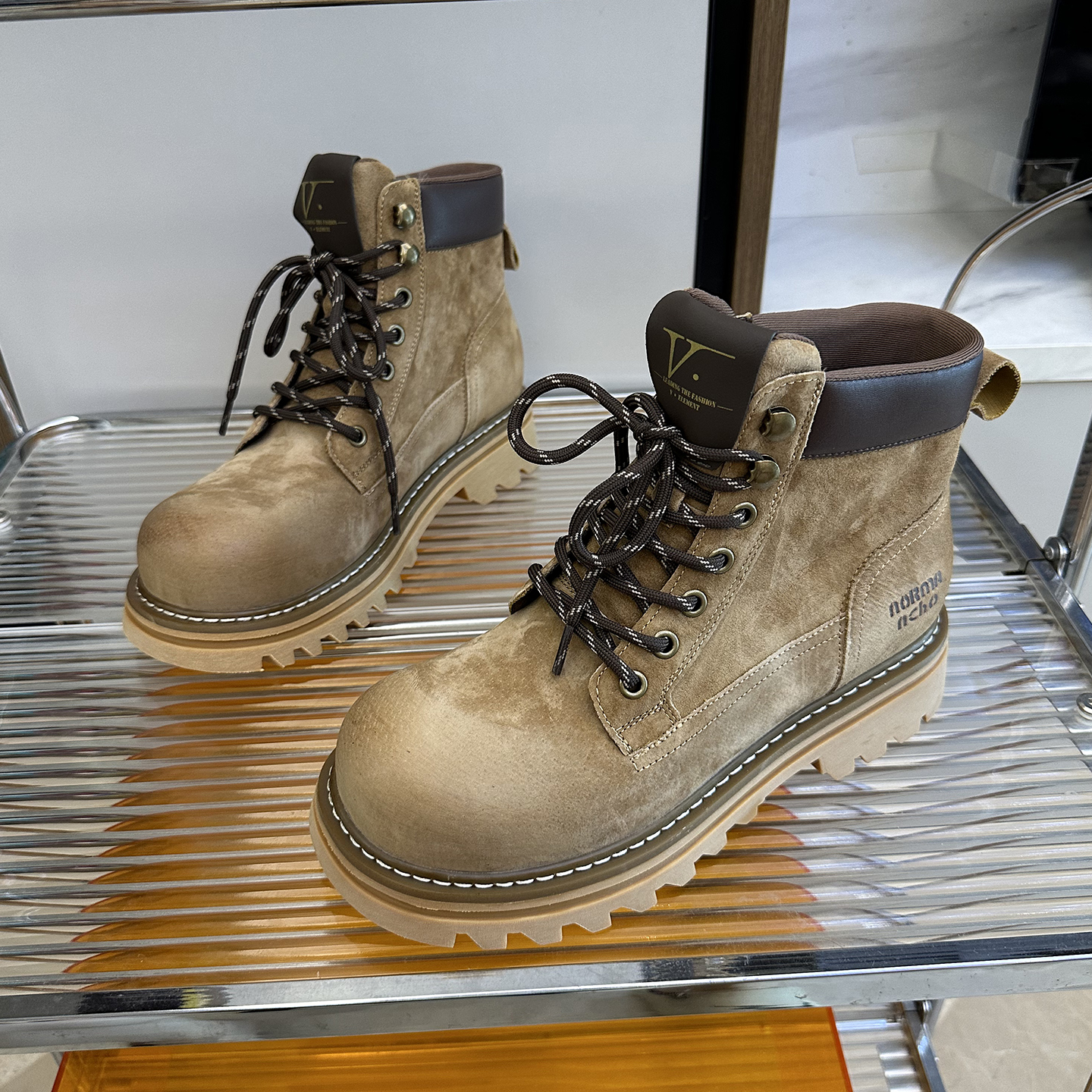2025春秋新款真皮品质ot面包男鞋平底小香菱格欧货短靴纯皮马丁靴