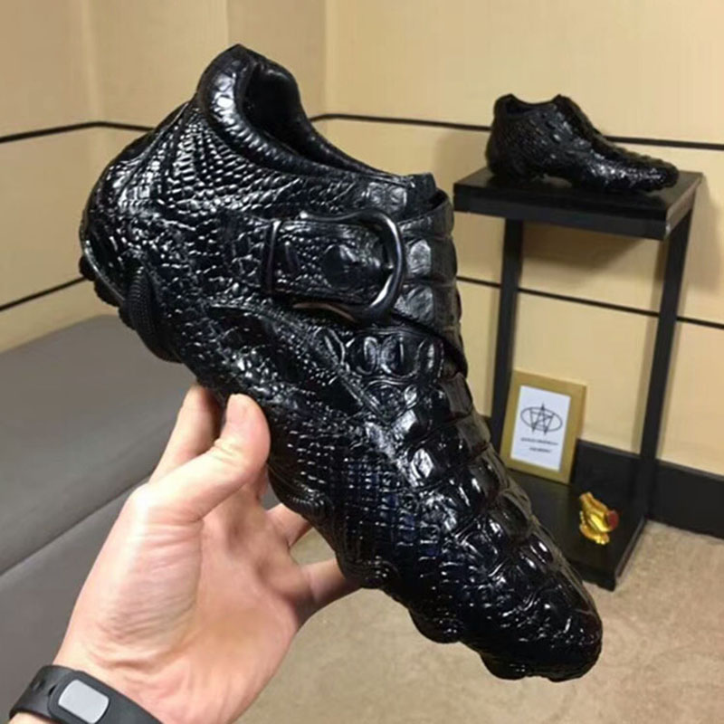 欧洲站男鞋真皮时尚鳄鱼纹皮鞋豆豆鞋高帮短靴子加绒休闲软底皮靴