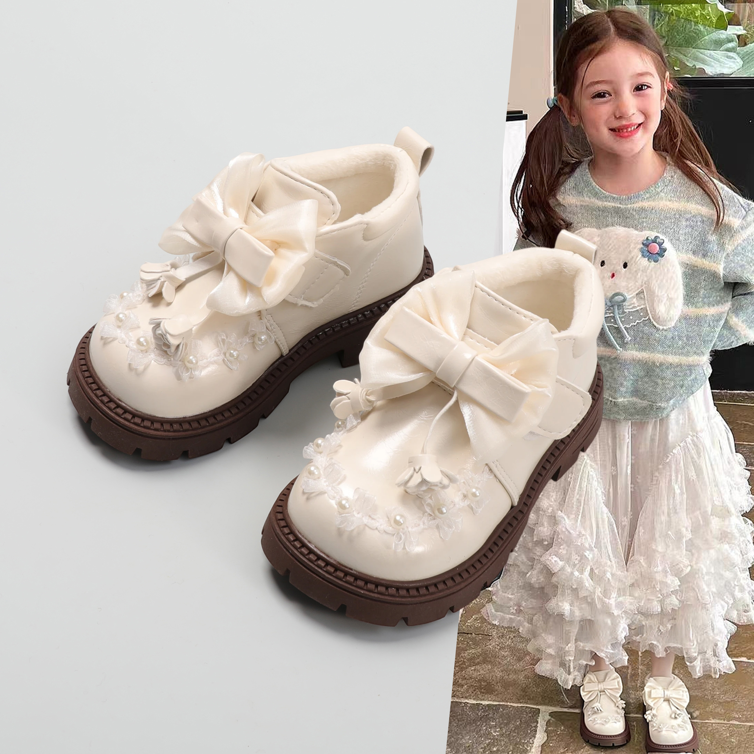女童皮靴2025时尚香风软底小女孩公主新款冬季儿童加绒二棉短靴冬