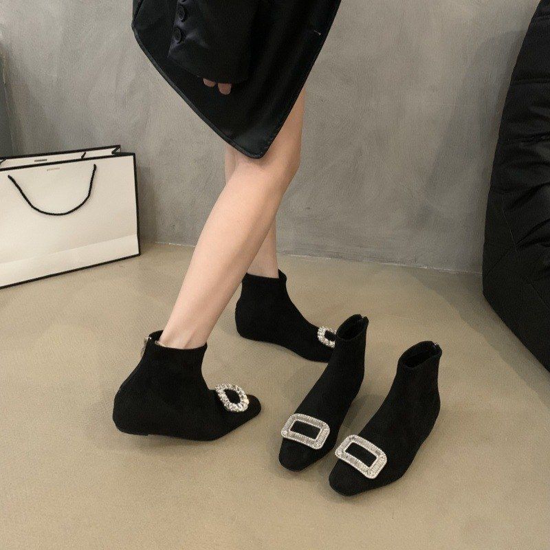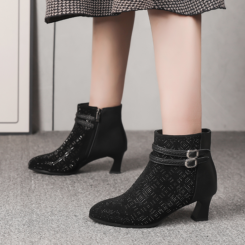 【贝蒂佩琪】显瘦小香风粗跟短靴女秋冬季方圆头高跟弹力瘦瘦靴子