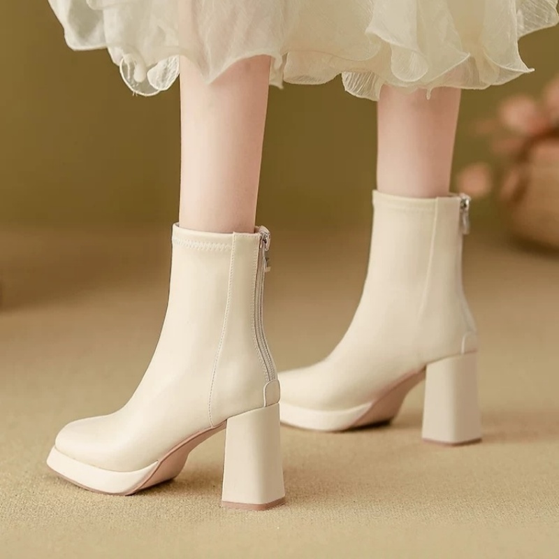白色瘦瘦马丁靴炸街小短靴粗跟高跟厚底防水台冬季新款切尔西靴女