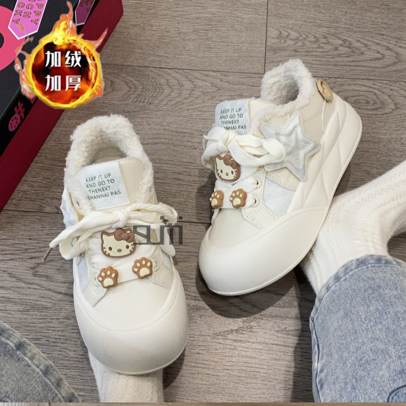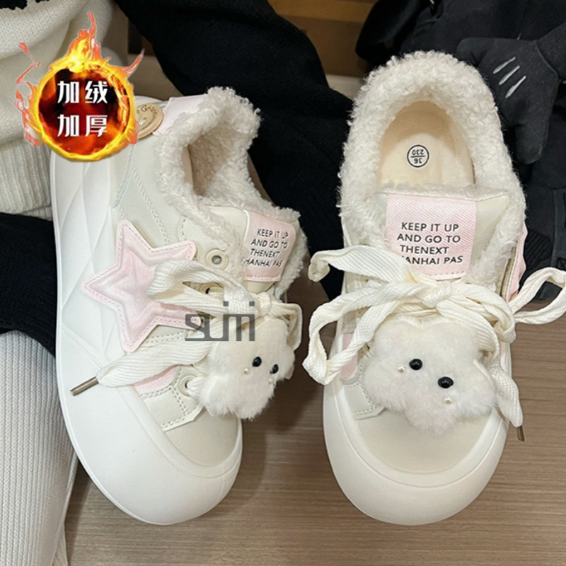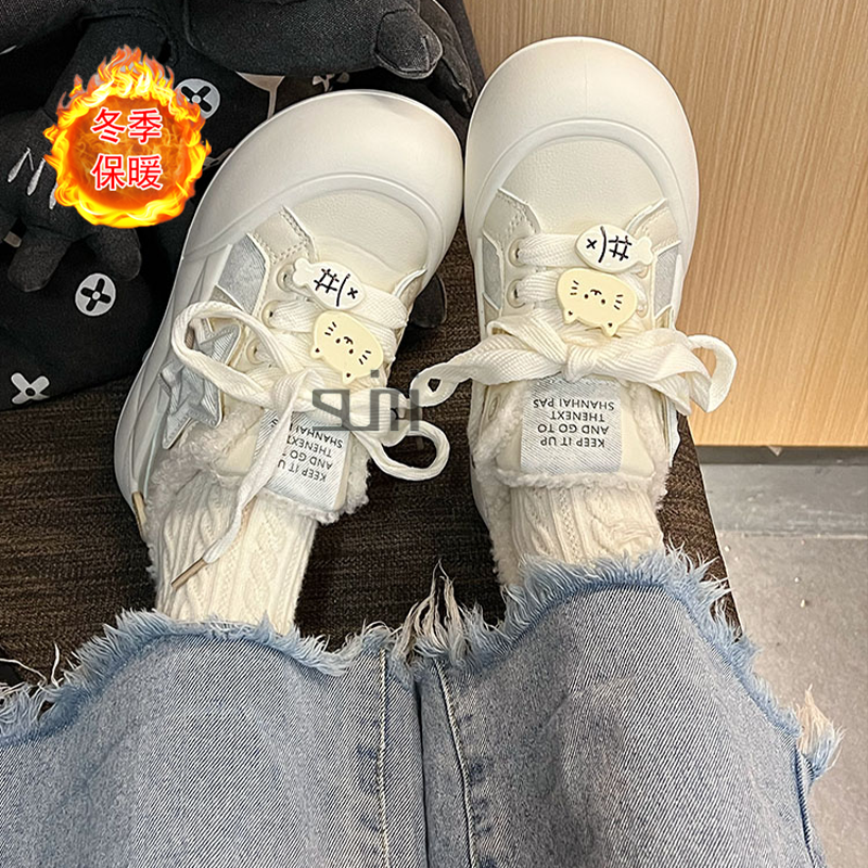 小众原创加绒小白鞋女童2026秋冬新款丑萌面包板鞋学生保暖二棉鞋