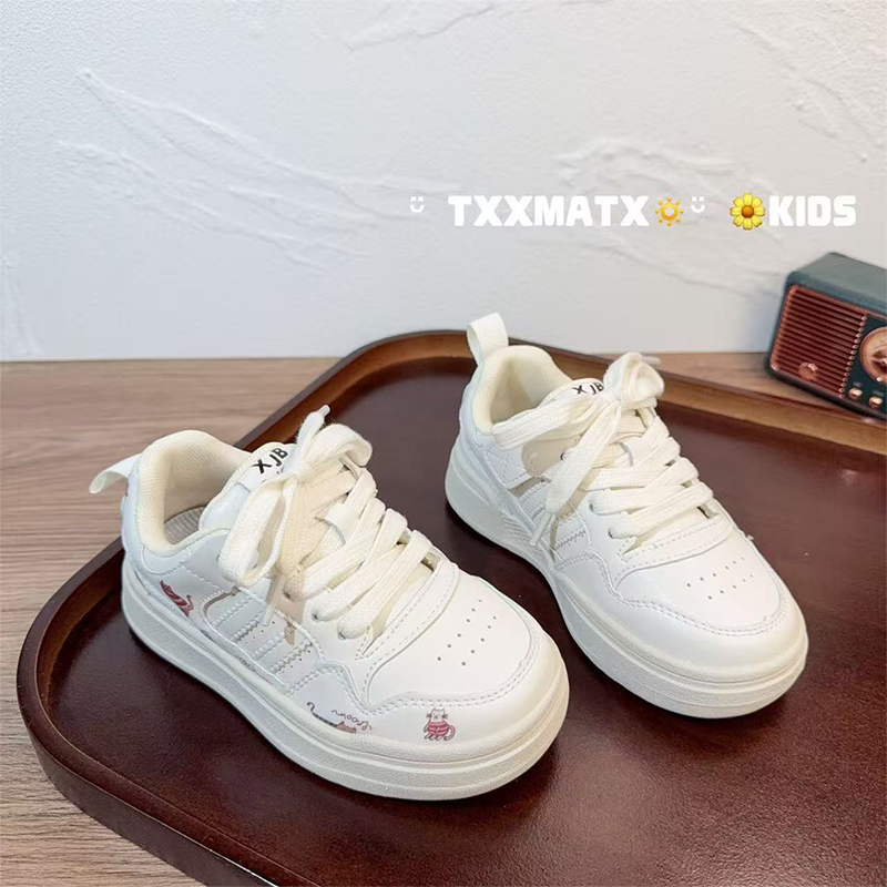 女童厚底小白鞋女2026秋季新款板鞋休闲百搭卡通学生面包鞋运动鞋