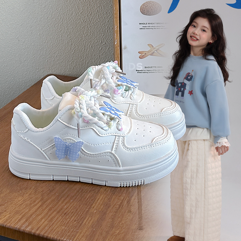 女童运动鞋春秋2026新款百搭爆款女孩小白鞋休闲蝴蝶厚底老爹鞋潮