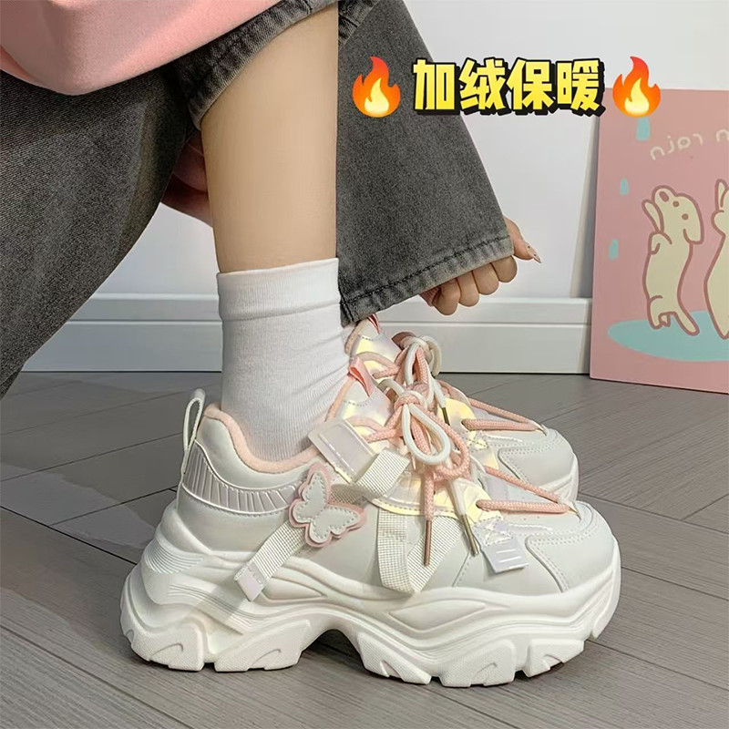 女童二棉老爹鞋2026新款厚底小白鞋中大童女孩加绒蝴蝶运动鞋潮鞋