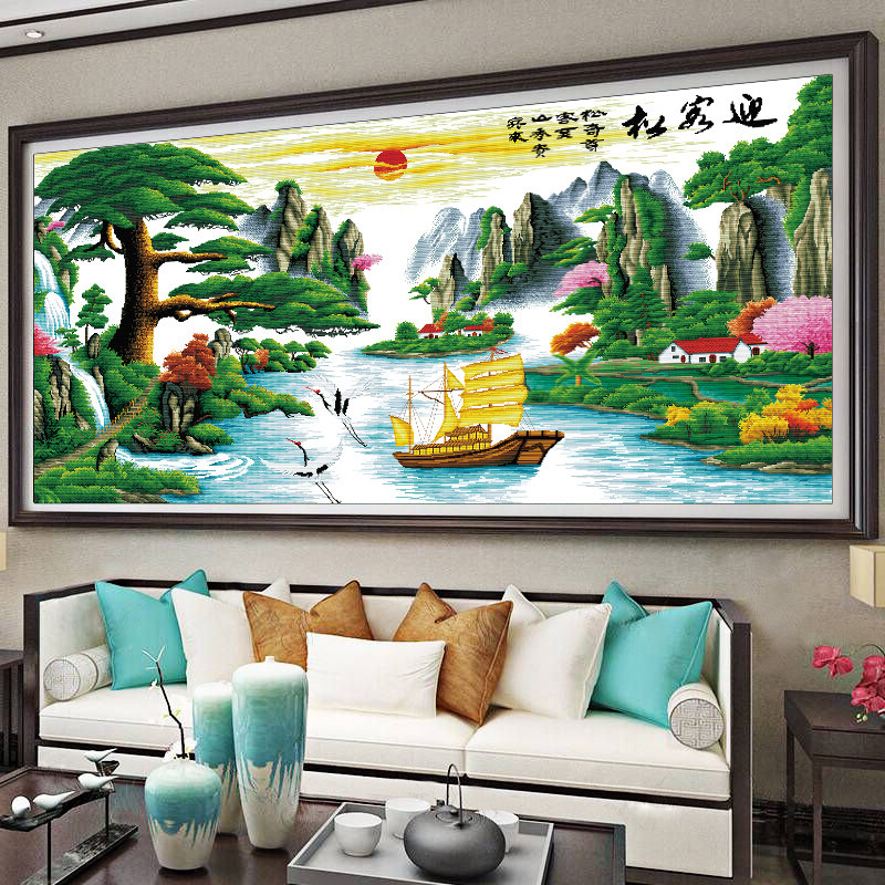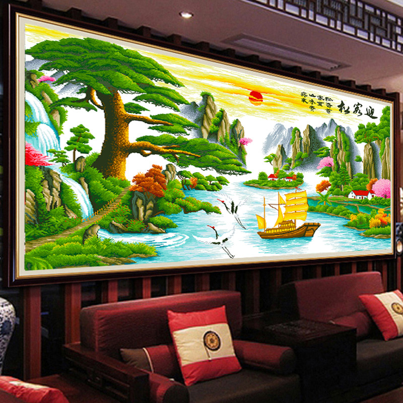 迎客松满绣十字绣线绣新款客厅卧室简约现代大幅山水挂画风景系列