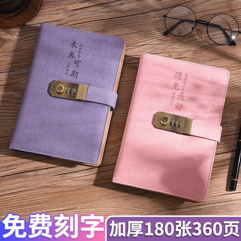 A5带锁笔记本学生日记本复古密码本密码锁记事本手账本本子文具厚
