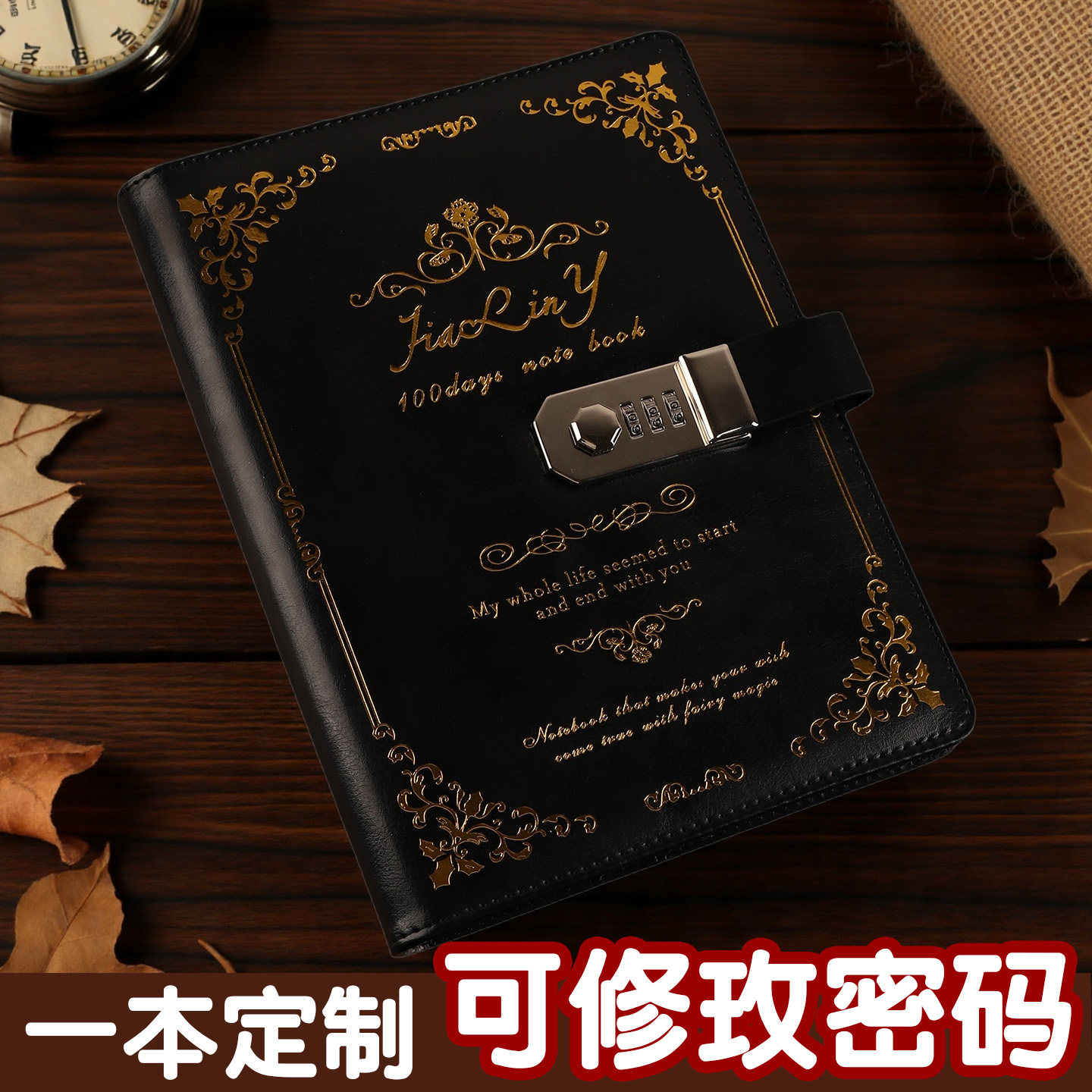 A5活页笔记本密码锁记事本日记本复古大学生高颜值文艺可拆卸记事本空白横线内页手账本伴手礼密码本礼盒装