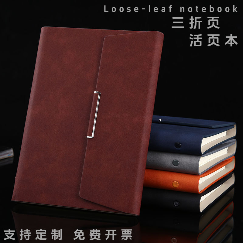 商务高档三折B5活页加厚笔记本本子定制可印logo简约办公会议工作记录本a5外壳可拆卸日记本复古多功能记事本