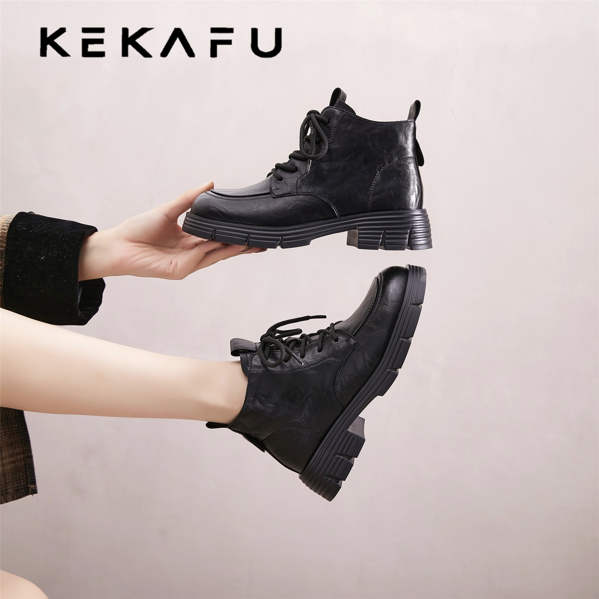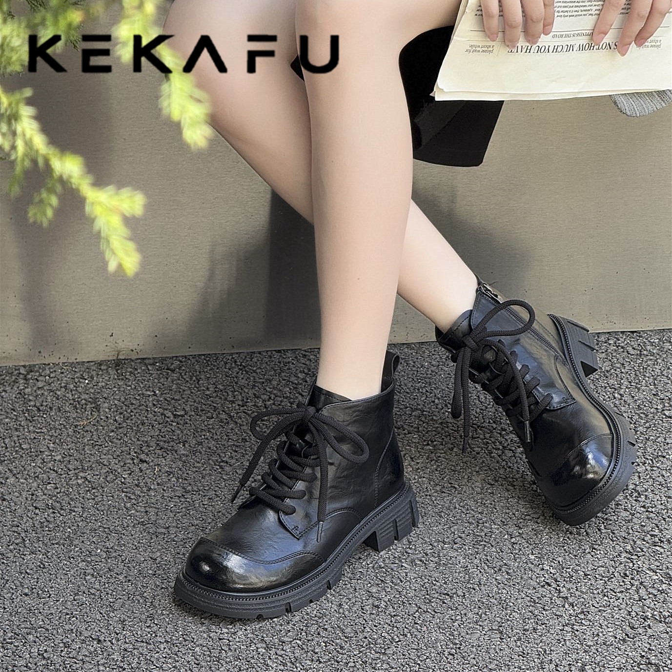 - 复古马丁靴女平底短靴