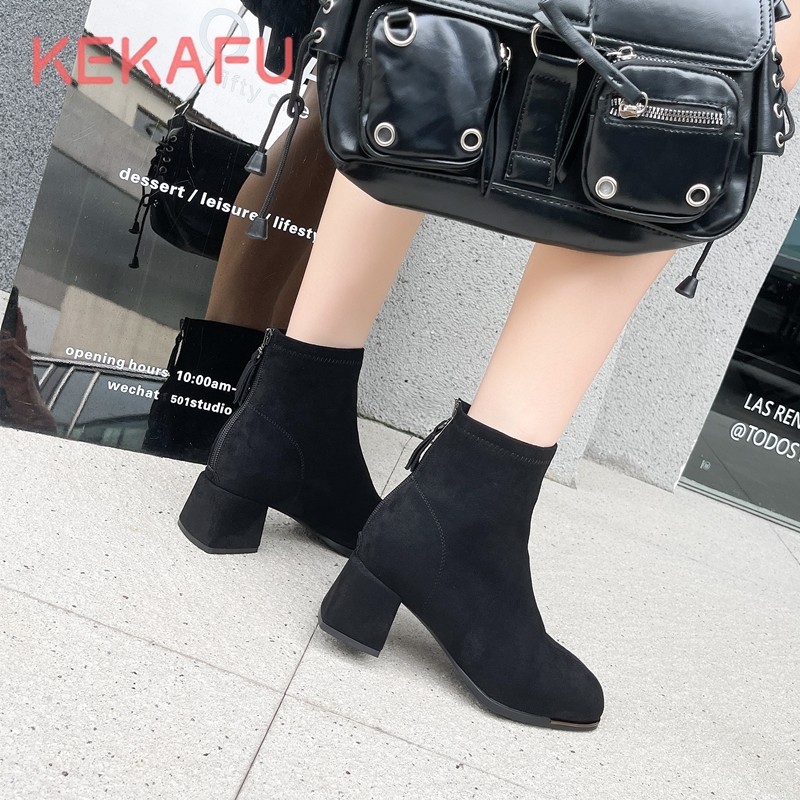 - 粗跟短靴女春秋单靴 韩版