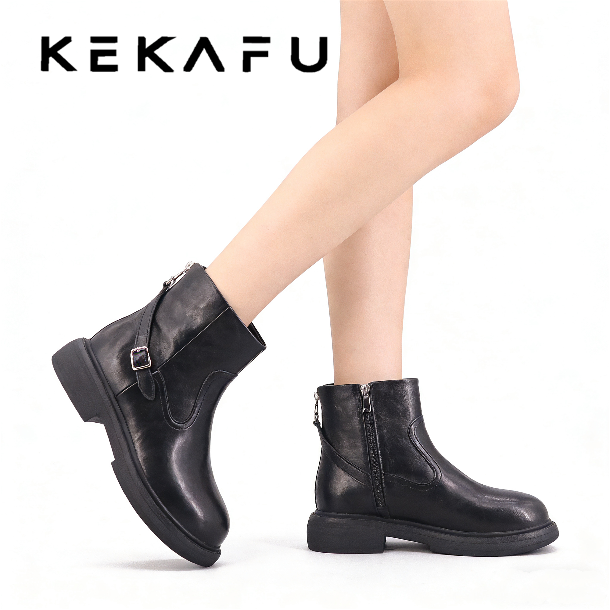 - 女鞋秋平底短靴子
