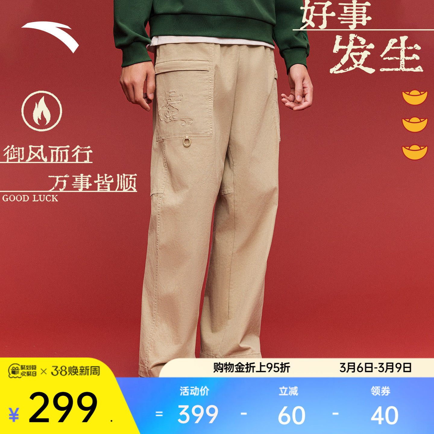 安踏好事发生丨休闲长裤男裤春季棉质宽松工装直筒裤子152618506