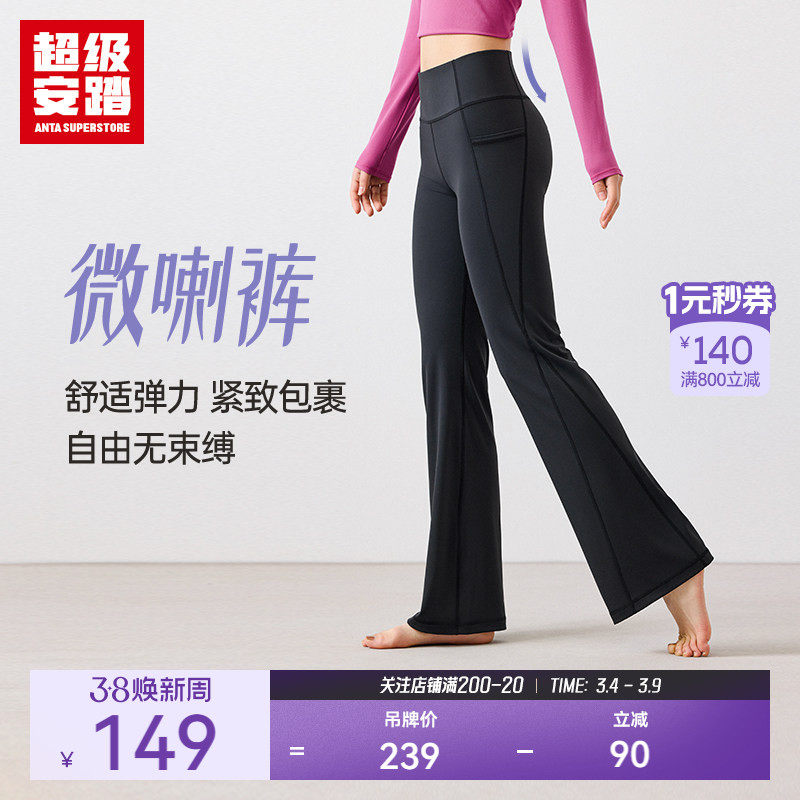 超级安踏长裤女瑜伽裤高腰紧身裤弹力修身显腿长喇叭裤162517337U