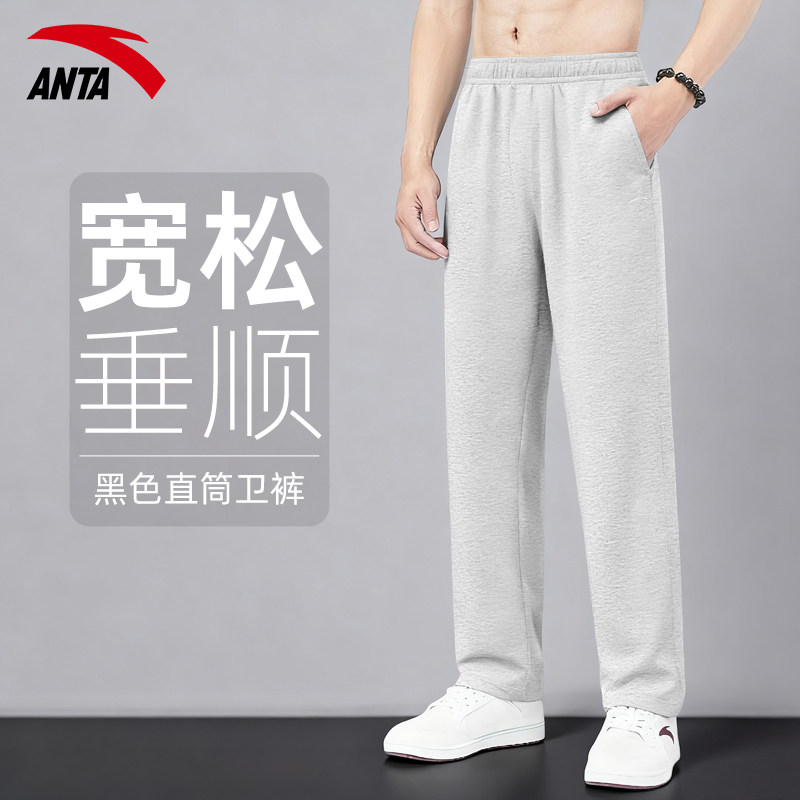 安踏运动裤男士春季新款直筒裤休闲卫裤黑色跑步长裤挺括针织裤子