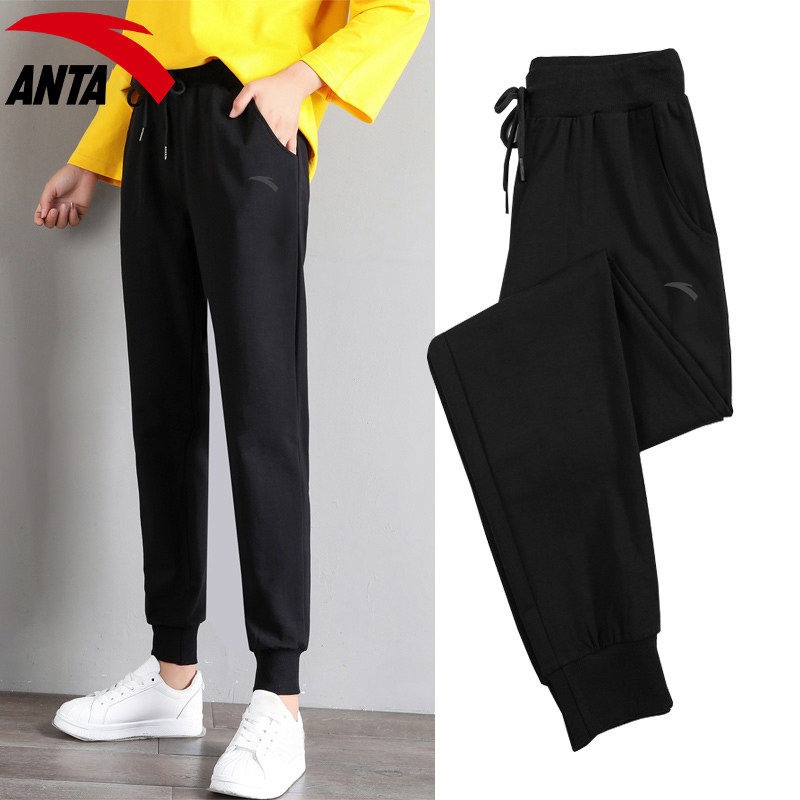 安踏长裤女黑色春季新款大码百搭时尚束脚裤针织休闲跑步运动裤子