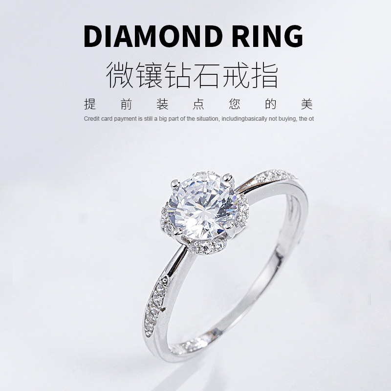 s925纯银新版四爪镶钻锆石戒指简约时尚气质指环女日韩版潮人新品