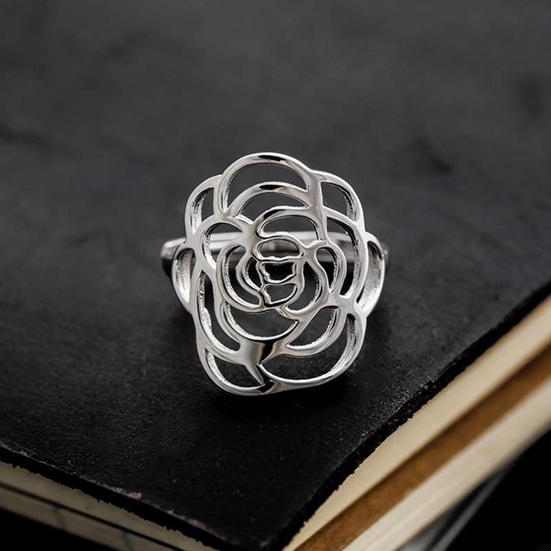 食指戒指925纯银玫瑰镂空潮人时尚活口可调节宽指环女精致日韩风