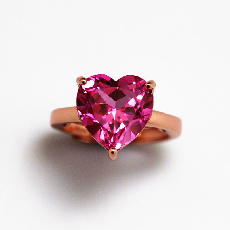 心形粉摩根石戒指女款S925纯银镀18K金日韩活口潮人粉红宝石介子