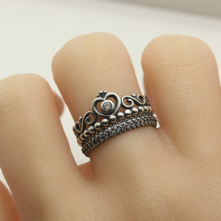 S925纯银泰银戒指 复古皇冠满钻银指环日韩潮人女生闺蜜指环礼物