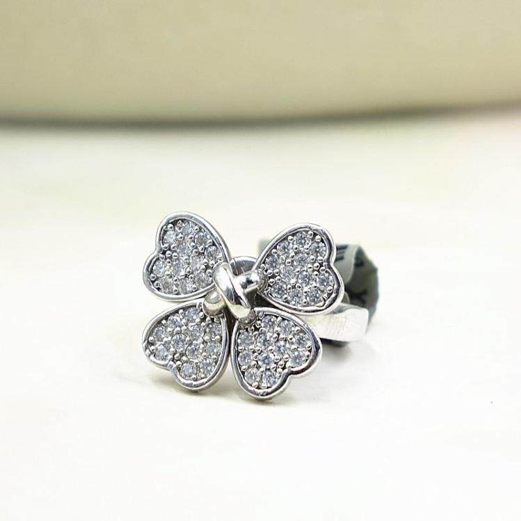 包邮威妮华925银镶嵌锆石纯银戒指女日韩时尚四叶草指环潮人饰品