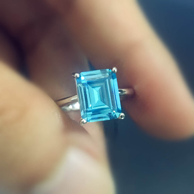 ㊣美国优雅天然海蓝色锆石戒指 女纯银925钻石指环 日韩潮人个性