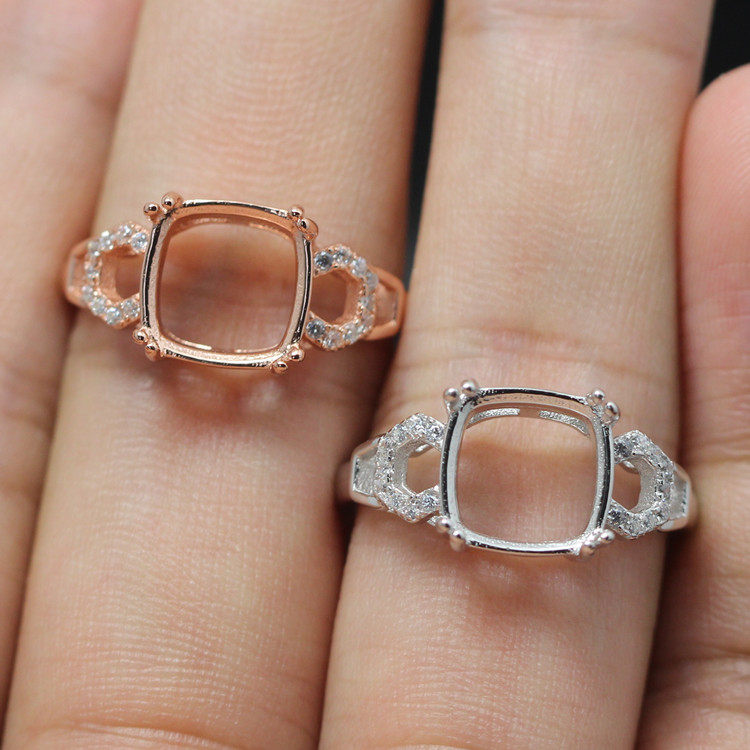 正方戒托日韩版潮人戒指空托女士925纯银镀K金防过敏空拖指环活口