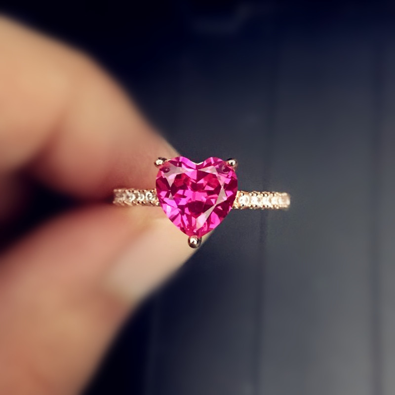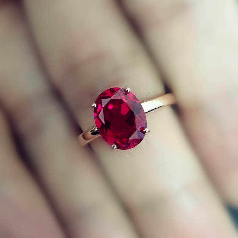 缅甸色红宝石戒指女款925纯银戒24K白金钻戒女指环日韩时尚潮人