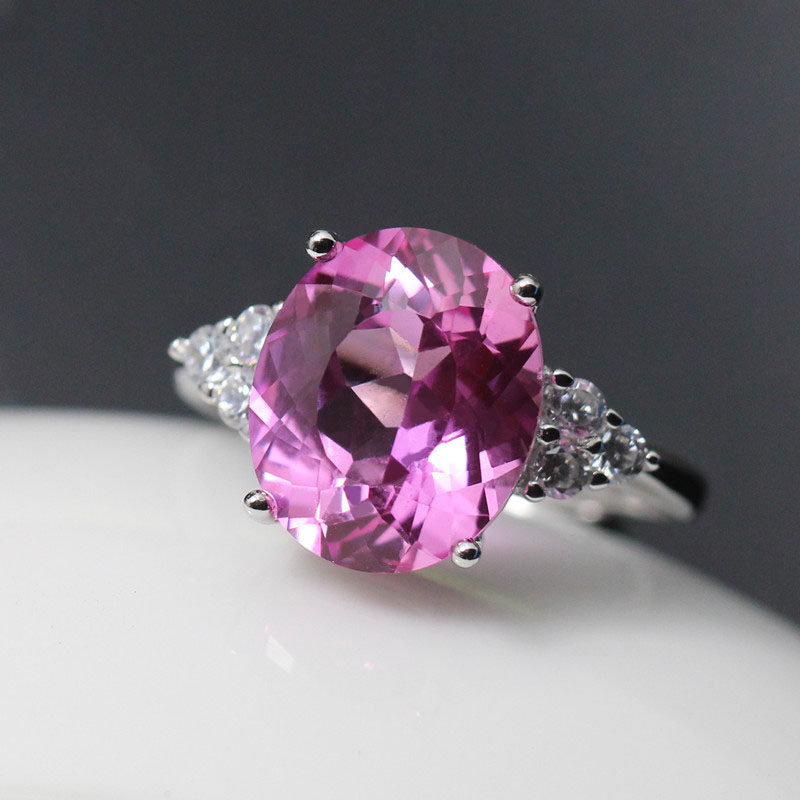气质女士款宝石戒指925纯银饰品送闺蜜女友礼物椭圆蛋形日韩潮人