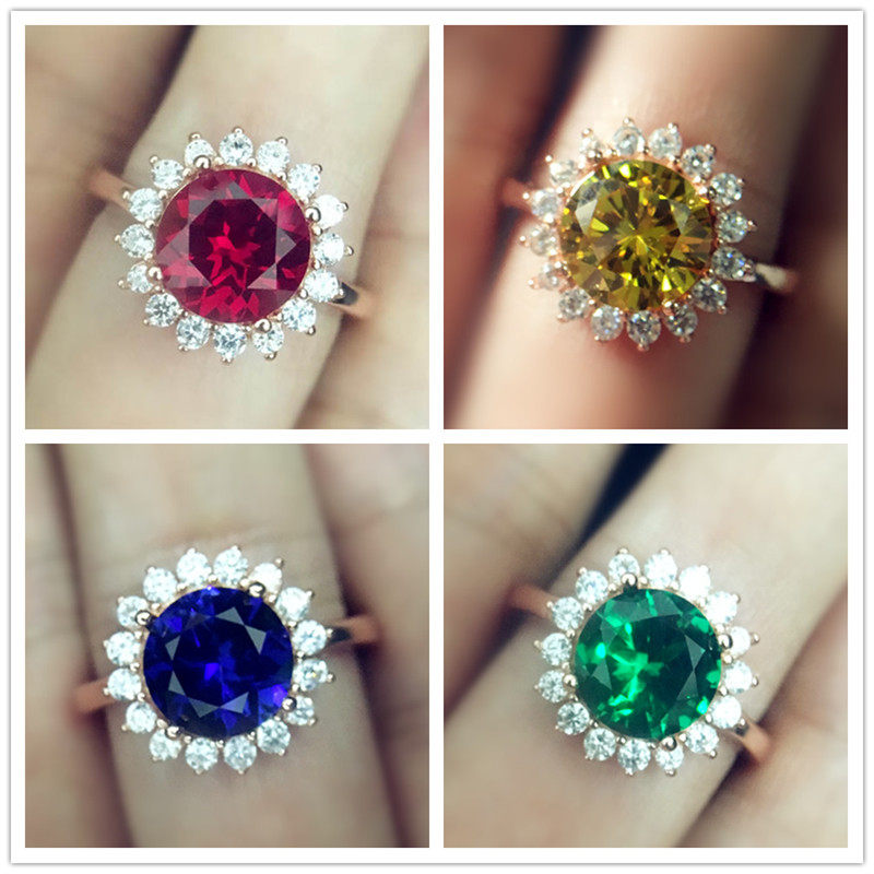 豪华彩色宝石戒指镶嵌碎钻正品925纯银女款时尚饰品日韩花朵潮人
