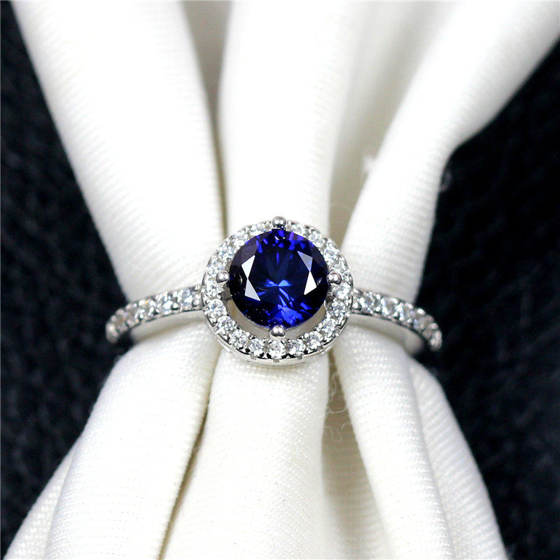 皇家蓝宝石戒指女1克拉坦桑石银钻戒925纯银饰品日韩潮人生日礼物