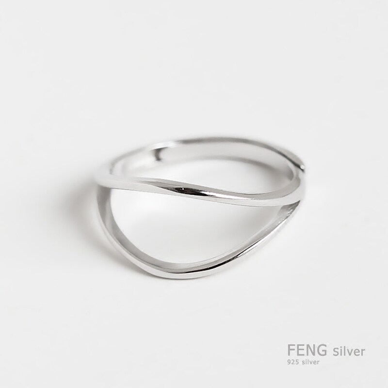 原宿食指戒指女日韩潮人学生925纯银几何双线开口戒可调节宽指环
