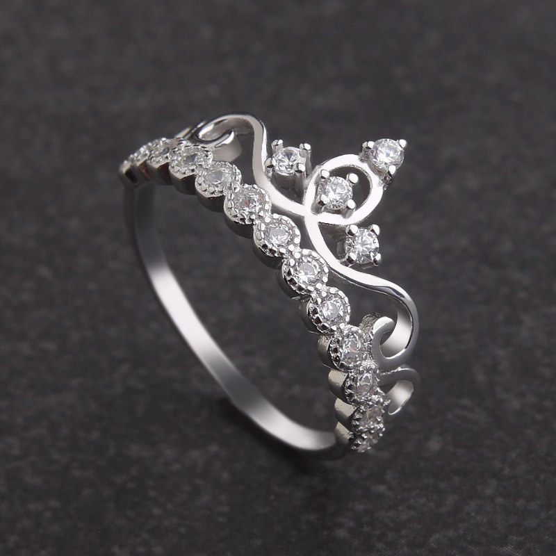 S925皇冠戒指女纯银日韩潮人个性饰品仿真钻戒不掉钻礼物送女友