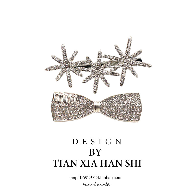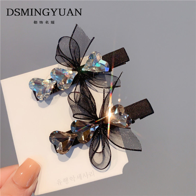 韩国儿童雪花蝴蝶结亮钻金属发夹小女孩高级质感侧边刘海发卡头饰