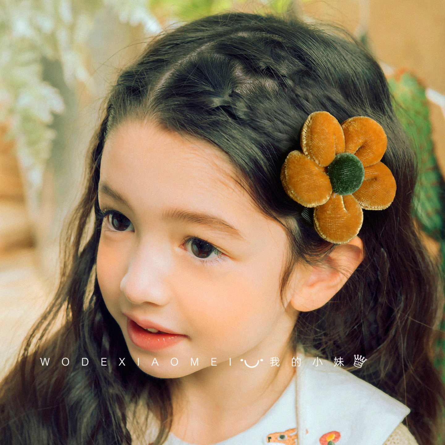 儿童发饰可爱丝绒花朵发夹女孩公主宝宝前额夹子侧边刘海发卡头饰