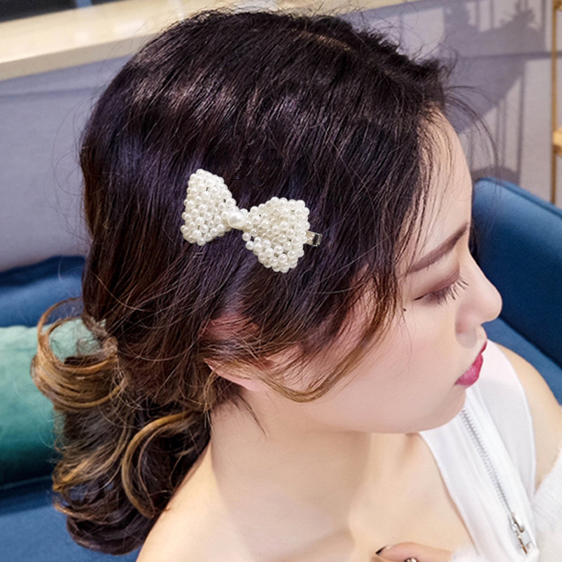 手工蝴蝶结珍珠发夹韩国网红气质百搭刘海发卡头饰一字边夹女发饰