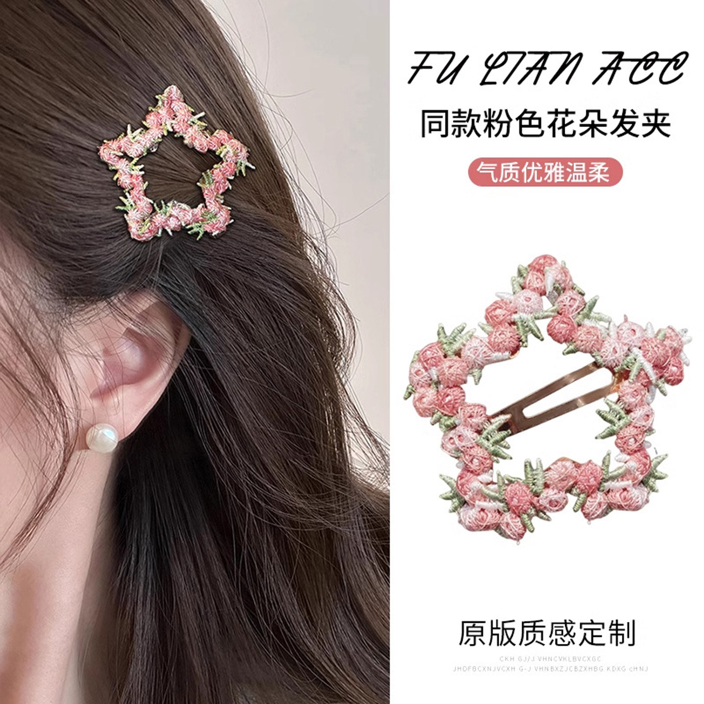 花朵发夹女前额侧边碎发一字鸭嘴夹小众设计甜酷少女刘海发卡头饰