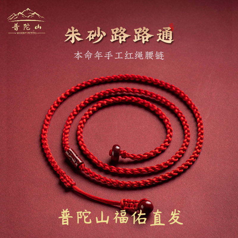 【普陀山官方】2026马年本命年红绳腰链手工编织中国风可调节腰链