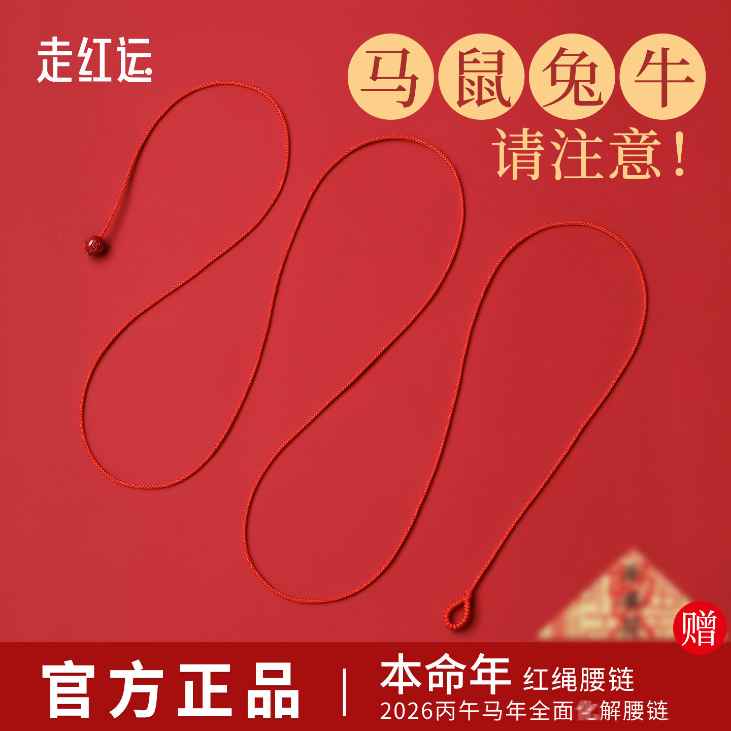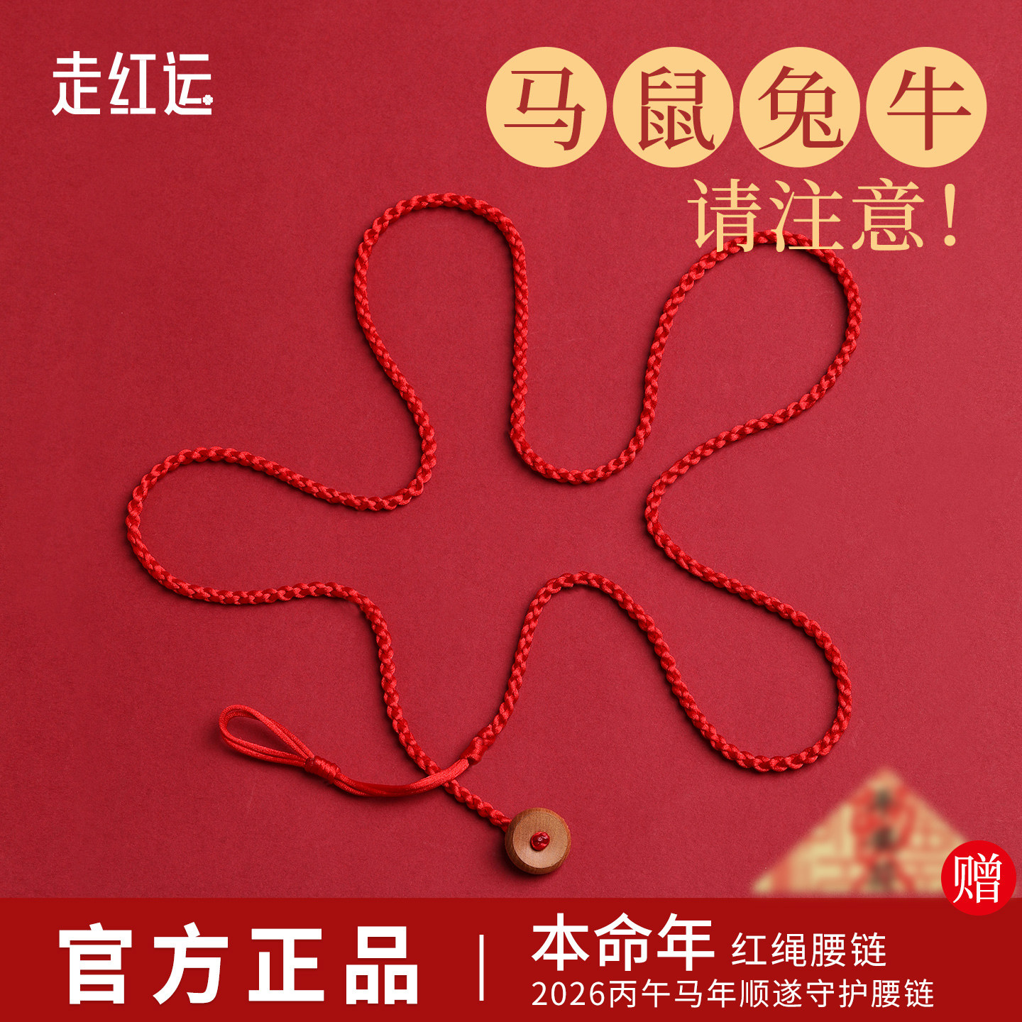 普陀山2026马年朱砂太岁红绳腰链女本命年生肖马鼠牛兔鸡红腰绳男