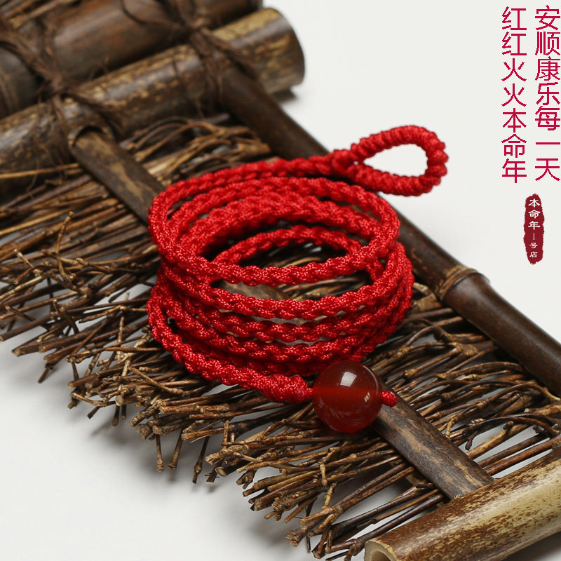 真安顺生肖属马本命年红腰带平安扣马到功成红绳腰红玛瑙链转运珠