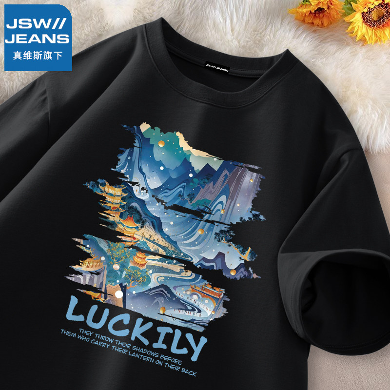 真维斯旗下国潮短袖t恤男夏季青少年潮流黑色体恤宽松纯棉打底衫